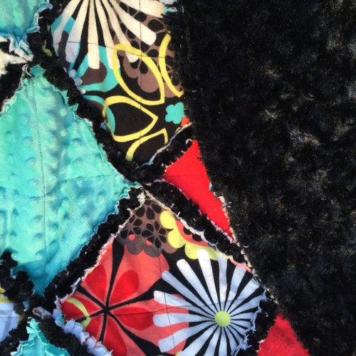 Baby Rag Quilt In Turquoise Black Coral Yellow And White Reverse Side Has Black Swirl Fur For An Extra Luxurious Feel Handmade Quilt Www Japaratinga Al Gov Br